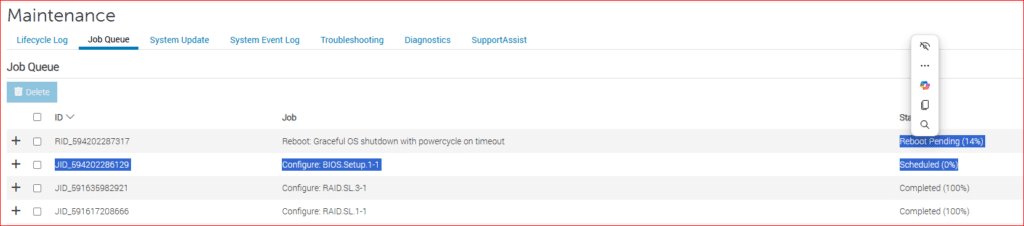 Job devamını kontrol etmek için Maintance bölümünden Job Queue kısmından işlemin durumu takip edilebilir.