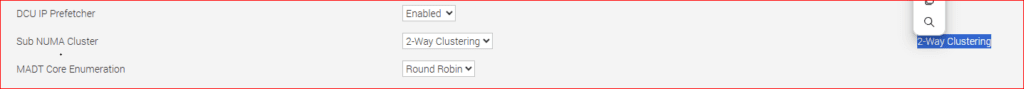 Sub NUMA Cluster kısmına girilmektedir. Bu özelliği açmamızın sebebi Büyük Numa nodeları daha küçük alt birimlere bölmek için kullanılmaktadır. Bu özellik sayesinde memory latency’i azaltabiliriz.