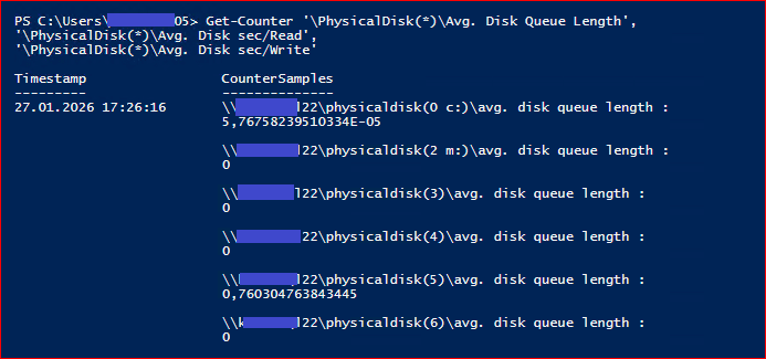 Get-Counter '\PhysicalDisk(*)\Avg. Disk Queue Length',