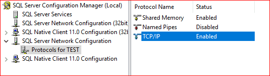 Sql server kurulu olan sunucumuzun ip adresini ve sql configuration manager’den tcp/ip port numarasını almak gerekiyor.